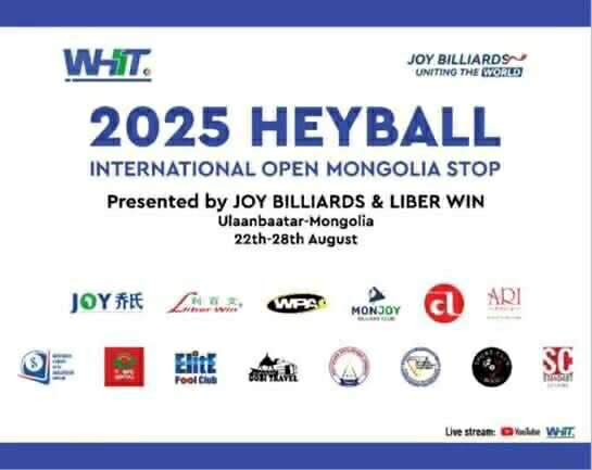 "Joy Heyball International Open Mongolia Stop" тэмцээн 8 сарын 22-28-ны өдрүүдэд Монгол Улсад байгуулагдаж байна.