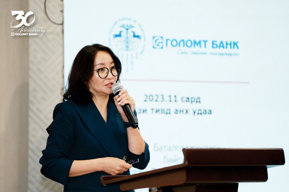 Голомт банк JICA төслийн зээлийг Монгол Улсад хүртээмжтэй олгодог банкны хувьд энэ удаагийн арга хэмжээнд оролцон бизнес эрхлэгчдэд зориулсан санхүүгийн бүтээгдэхүүн, үйлчилгээгээ танилцуулахын зэрэгцээ Голомт банкны Жижиг, дунд банкны газрын захирал Ц.Байгалмаа “Хөгжлийг тэтгэгч хүч: Банкнуудын үүрэг оролцоо” сэдэвт хэлэлцүүлэгт панелистаар оролцож, бизнес эрхлэгчдийг дэмжих талаар өөрийн бодлоо хуваалцлаа.