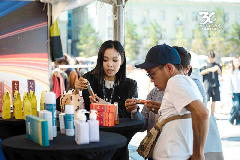 Форумын хүрээнд “Олон улсын бизнес эрхлэгч эмэгтэйчүүдийн бараа бүтээгдэхүүний үзэсгэлэн худалдаа”-г Сүхбаатарын талбайд 2 өдрийн турш зохион байгуулсан бөгөөд Голомт банк тус үзэсгэлэнд харилцагч байгууллагуудынхаа "Women owned" шошготой бараа бүтээгдэхүүнийг танилцуулахын зэрэгцээ бизнес эрхлэгчдэд зориулсан санхүүгийн бүтээгдэхүүн үйлчилгээгээ танилцуулж ажилласан юм. “Олон улсын бизнес эрхлэгч эмэгтэйчүүдийн бараа бүтээгдэхүүний үзэсгэлэн худалдаа”-нд Голомт банкнаас гадна бусад арилжааны банкнуудын харилцагчид, нийслэлийн 9 дүүргийн 125 гаруй эмэгтэй жижиг, дунд үйлдвэрлэл эрхлэгч бүсгүйчүүд оролцсон байна.
