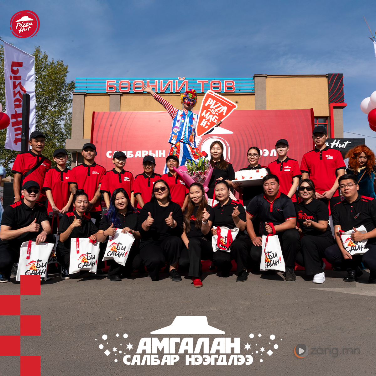 Дэлхийн алдарт Пицца Хат брэндийг Монгол Улсад анх 2014 онд 40 ажилтантайгаар нэвтрүүлж байсан бол өдгөө 800 гаруй ажилтантай 30 салбартайгаар үйл ажиллагаа явуулж байна. Хамгийн отгон салбараа өнөөдөр ийнхүү Амгаланд нээж, арга хэмжээ зохион байгууллаа.