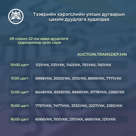 Тээврийн хэрэгслийн улсын дугаарын дуудлага худалдаанд дараах байдлаар оролцохыг Автотээврийн үндэсний төвөөс зөвлөлөө. Үүнд: