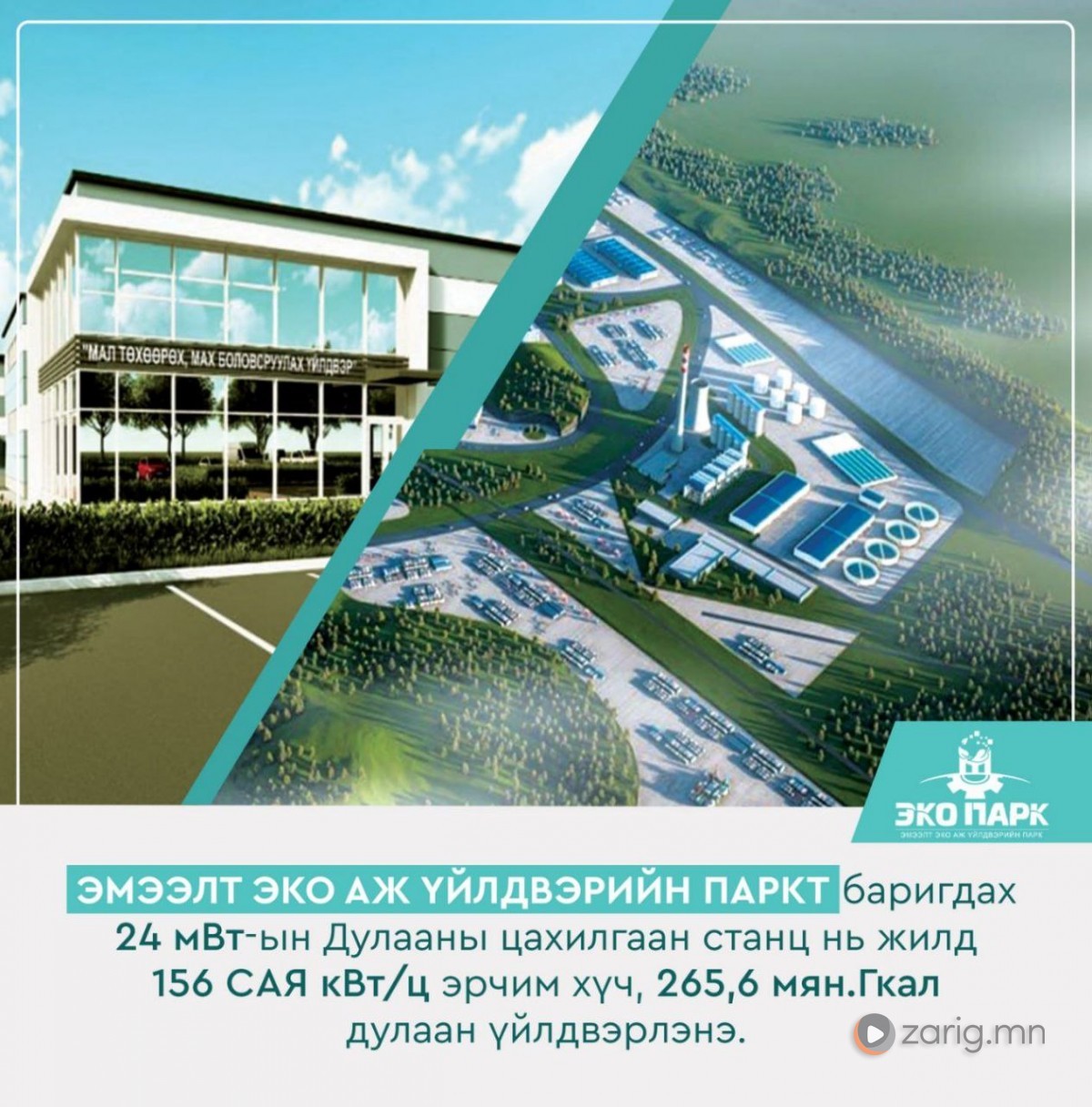 Тус паркийг цахилгаан, дулааны эрчим хүч, үйлдвэрийн технологийн уур, хэрэгцээний халуун усаар хангах зорилгоор 24 МВт-ын дулааны цахилгаан станц шинээр барина. Тус дулааны цахилгаан станцын зураг төсвийг энэ онд дуусгаж, 2026 онд барилга угсралтын ажлыг эхлүүлж, хоёр жилийн хугацаанд барьж ашиглалтад оруулахаар төлөвлөсөн.