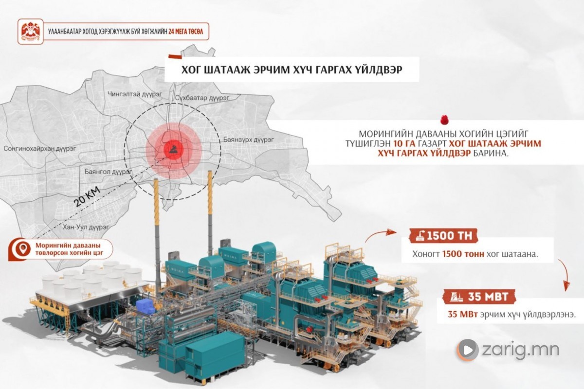 Нийслэлийн хэмжээнд гурван төвлөрсөн хогийн цэгт нийлүүлж буй нийт хог хаягдлын 11.4 хувийг дахин боловсруулж, 88.6 хувийг булж устгаж байна. Хогийг булж устгах арга нь метан хийг ихээр ялгаруулдаг, байгаль орчинд сөрөг нөлөө ихтэй. Тиймээс хогийг булж устгахгүйгээр шатаах аргаар эрчим хүч гаргаж авах дэвшилтэт технологи бүхий “Хог шатааж эрчим хүч гаргах үйлдвэр”-ийг Хан-Уул дүүргийн 12 дугаар хороо, Морингийн давааны хогийн цэгийг түшиглэн 10 га газарт ирэх онд барьж эхэлнэ. Тус үйлдвэр нь хоногт 1500 тонн хог шатааж, 35 МВт цахилгаан эрчим хүч үйлдвэрлэж өөрийн болон хогны үйлдвэр технологийн паркийн хэрэгцээг хангах хүчин чадалтай. 2022 онд батлагдсан Төр, хувийн хэвшлийн түншлэлийн тухай хуульд заасан шаардлагуудыг хангаж, Монгол Улсын хэмжээнд анх удаа тус хуулийн дагуу хэрэгжих бүтээн байгуулалтын төслүүдийн нэг болж буй онцлогтой.