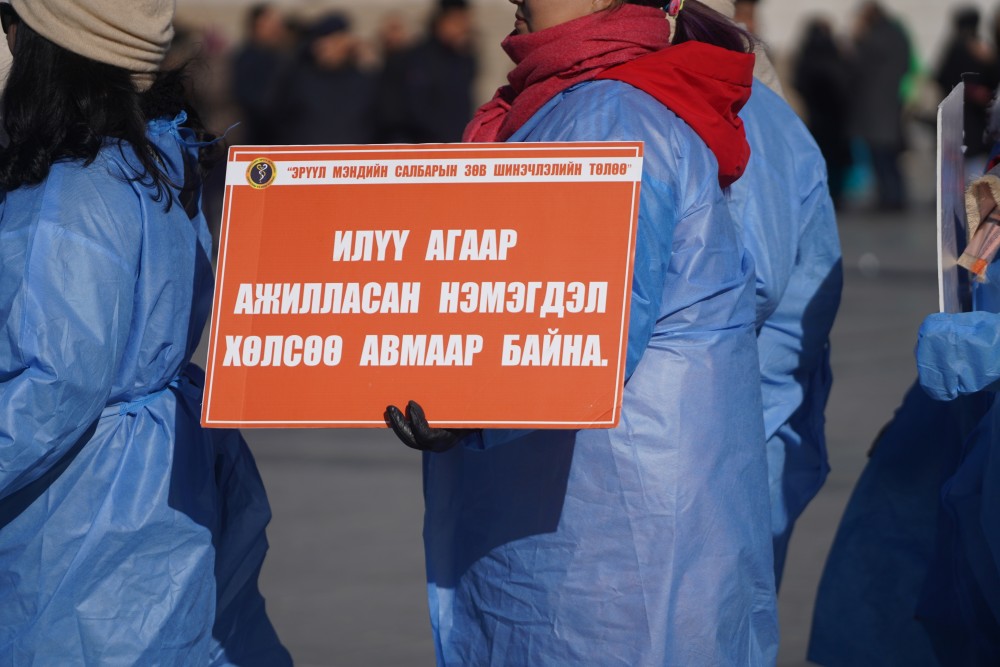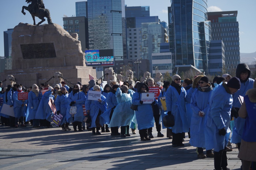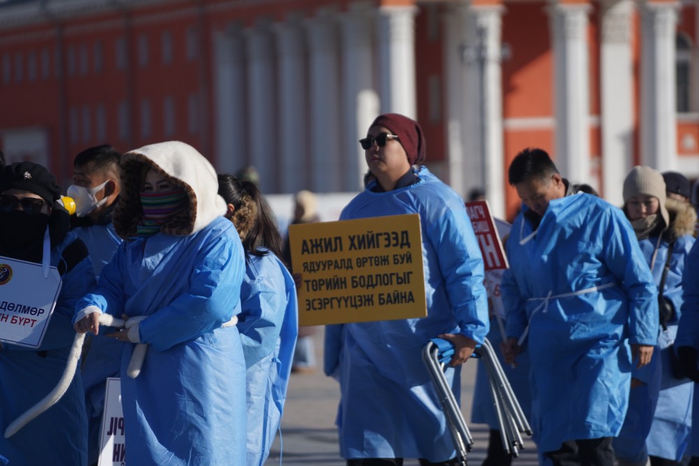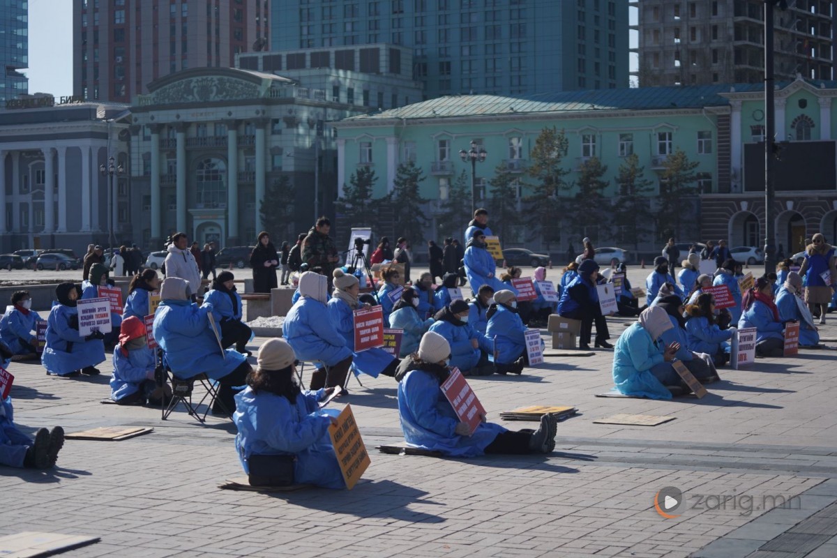 Эмч нарын жагсаал өнөөдөр /2025.10.26/ 17 дахь өдрөө үргэлжилж байна. Тэд эмч, эмнэлгийн салбарын ажилчдын цалинг 3.5 сая төгрөгт хүргэхийг шаардаж байгаа. Мөн төсвөөс эрүүл мэндийн салбарт зарцуулах хувь хэмжээг нэмэгдүүлэх, ажлын нормын хувцас зэрэг хангамж хэрэгслээр бүрэн хангахыг хүсэж байна. Сүүлийн таван жил нэг ч нормын хувцас аваагүй эмч ч байдаг гэж байсан юм. Хэрэв шаардлагыг биелүүлэхгүй бол ажил хаялт зарлахад бэлэн гэж мэдэгдсэн. Одоогийн байдлаар эмч, эмнэлгийн ажилчид ажлын өдрүүдээр 11:00–14:30 цагийн хооронд Төв талбай дээр жагсаж байна.