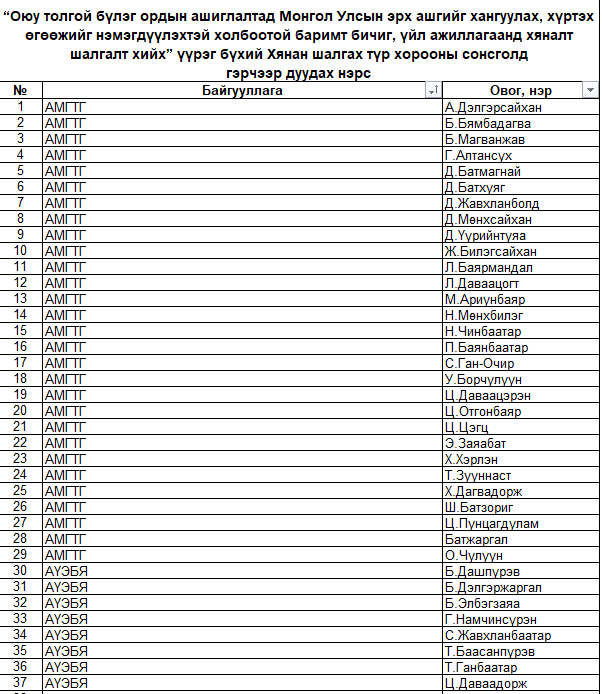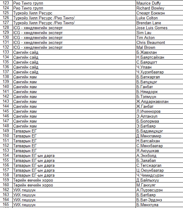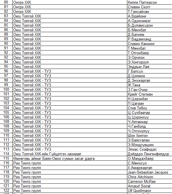 УИХ-ын гишүүн, Хянан шалгах Түр хорооны дарга О.Батнайрамдал: Үе үеийн гурван Ерөнхийлөгч, долоон Ерөнхий сайд, 25 Засгийн Газрын гишүүд, УИХ-ын 39 гишүүнийг сонсголд дуудлаа. Сонсголд АМГТГ, АҮЭБЯ, БОУАӨЯ, ГХЯ, ГЕГ, ЕТГ, ЗГХЭГ, Сангийн яам, Татварын ерөнхий газар, ҮАБЗ-ийн шинжээчид оролцоно. Мөн "Эрдэнэс Монгол" ХХК-ийнхан дарга нарын төлөөллүүд, "Монгол газар" ХК, Онтре, "Оюутолгой" компанийнхан, ТУЗ-ийнхөн, "Рио Тинто" групп болон Туркойз хилл компанийн төлөөллүүд оролцохоор болсон байна. Нэмээд хөндлөнгийн экспертүүд, эрдэс баялгийн зөвлөлийн мэргэжилтнүүд гэх нийт 300 гаруй хүнийг гэрчээр дуудан оролцуулна" гэж мэдэгдлээ.