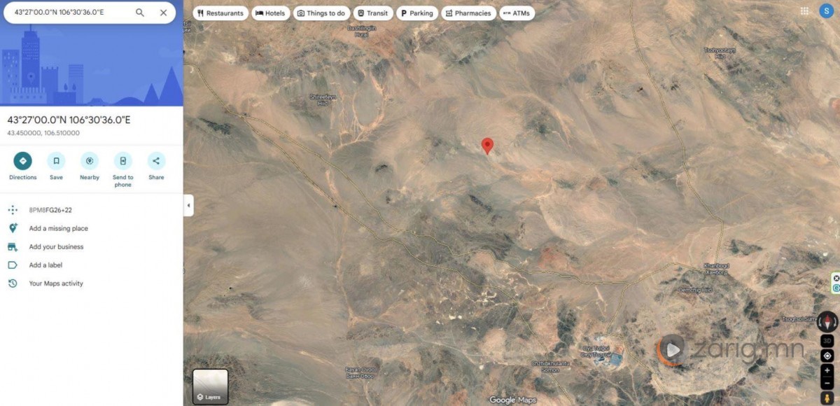 Өмнөговь аймгийн Манлай сумын төвөөс баруун урд зүгт 75км