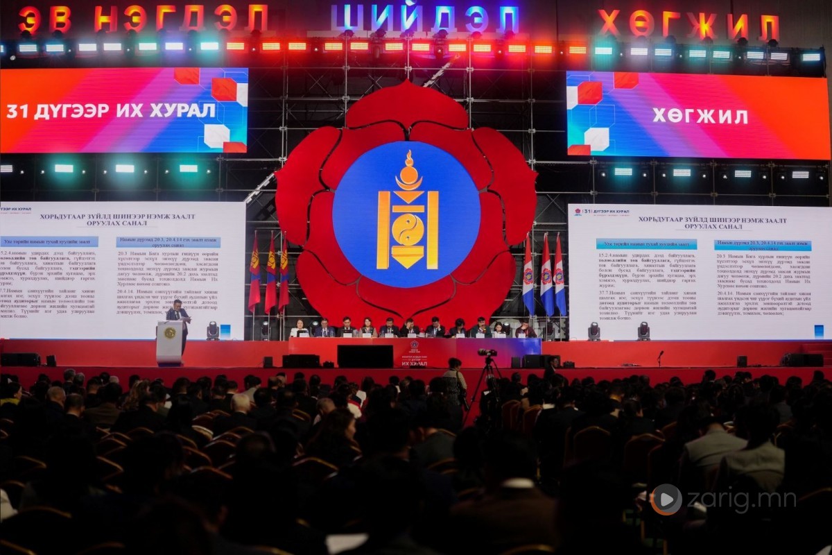 Монгол Ардын намын 31 дүгээр Их хурал хоёр дахь өдрөө үргэлжлэн Үндсэн дүрмийн өөрчлөлтийн төсөл болон намын хөтөлбөр буюу хичээн эрмэлзэх зүйлийн нэмэлт, өөрчлөлтийн төслийг хэлэлцэж байна.