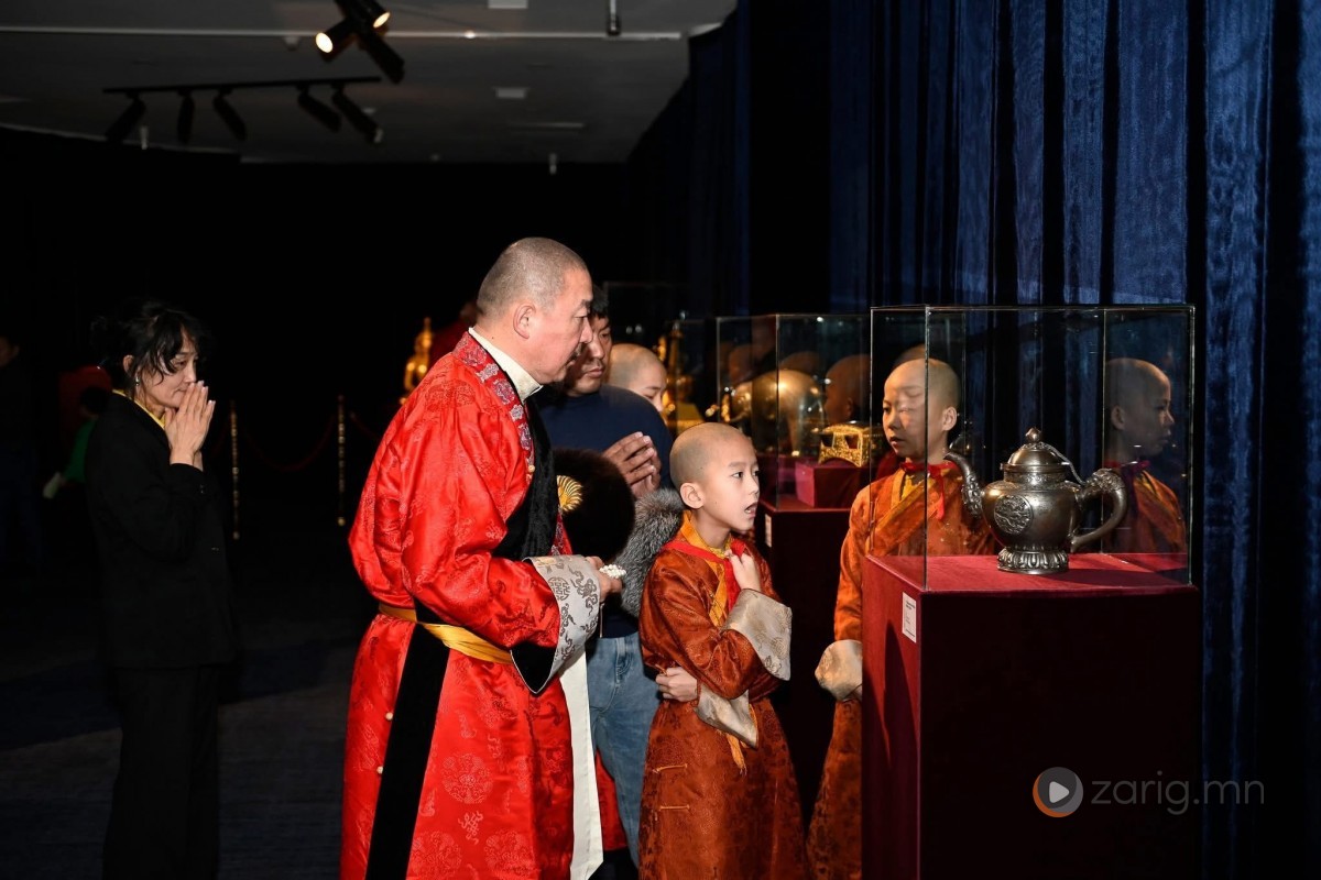Үзэсгэлэнд Чингис хаан Үндэсний музей, Монголын Үндэсний музей, Богд хааны ордон музей, Чойжин ламын сүм музейн сан хөмрөгт хадгалагдаж буй Өндөр гэгээний мутрын болон дэг сургуулийн 40 гаруй хосгүй үнэт бүтээлийг дэлгэв.