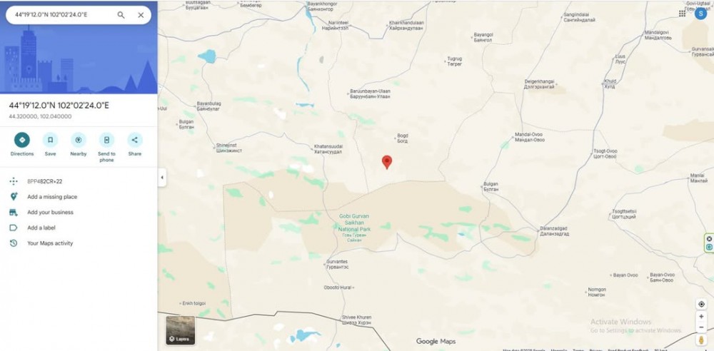 Өмнөговь аймгийн Сэврэй сумын төвөөс Хойд зүгт 81км