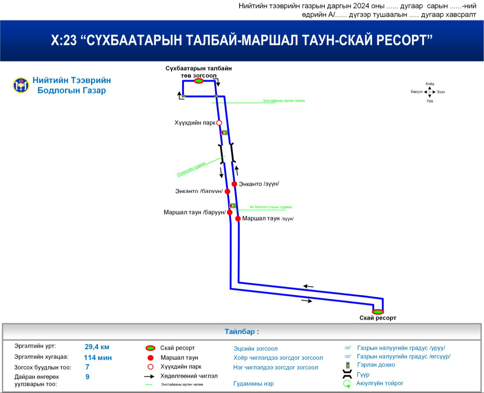 Иргэдийг цэвэр агаарт гарах боломжийг бүрдүүлж Х:23 Сүхбаатарын талбай-Маршал таун-Скай ресорт чиглэлд нэмэлт нэг автобусыг энэ сарын 6-ны өдрөөс өдөр бүр явуулж эхэлнэ.