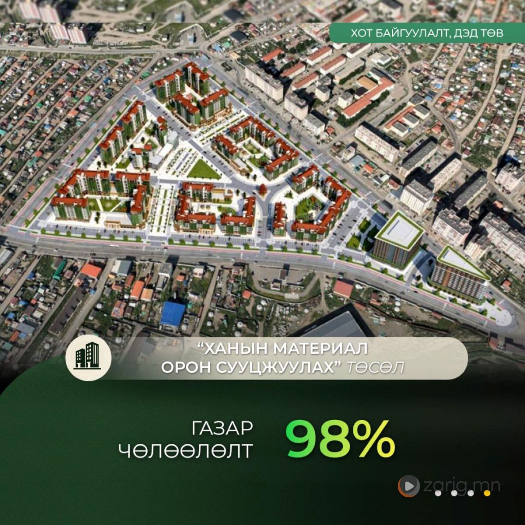 Улаанбаатар хотын агаар, хөрсний бохирдол болон авто замын түгжрэлийг бууруулж, иргэдийн эрүүл аюулгүй орчинд амьдрах нөхцөлийг бүрдүүлэхээр гэр хорооллыг орон сууцжуулах төслийг үе шаттай хэрэгжүүлж буй. Энэ хүрээнд Сонгинохайрхан дүүргийн 5 дугаар хороо, Ханын материал орчмын 12.6 га талбайд нийт 3000 айлын орон сууцыг барих ажлыг өнгөрсөн аравдугаар сарын 24-нөөс эхлүүлсэн.
