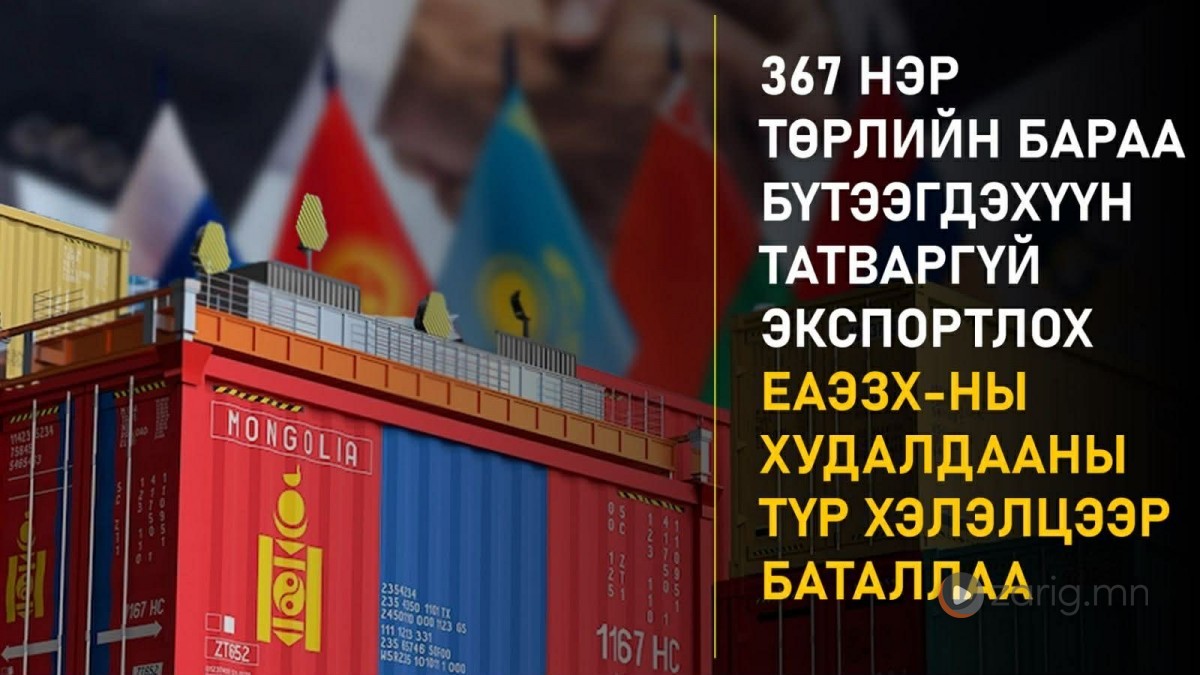 Засгийн газраас энэ оны 11 дүгээр сард УИХ-д өргөн мэдүүлсэн Монгол Улс болон Евразийн эдийн засгийн холбоо, түүний гишүүн орнууд хоорондын худалдааны түр хэлэлцээрийг баталлаа. Ингэснээр харилцан экспорт, импорт хийдэг 367 бараа бүтээгдэхүүнийг татваргүй экспортлох боломж бүрдлээ.