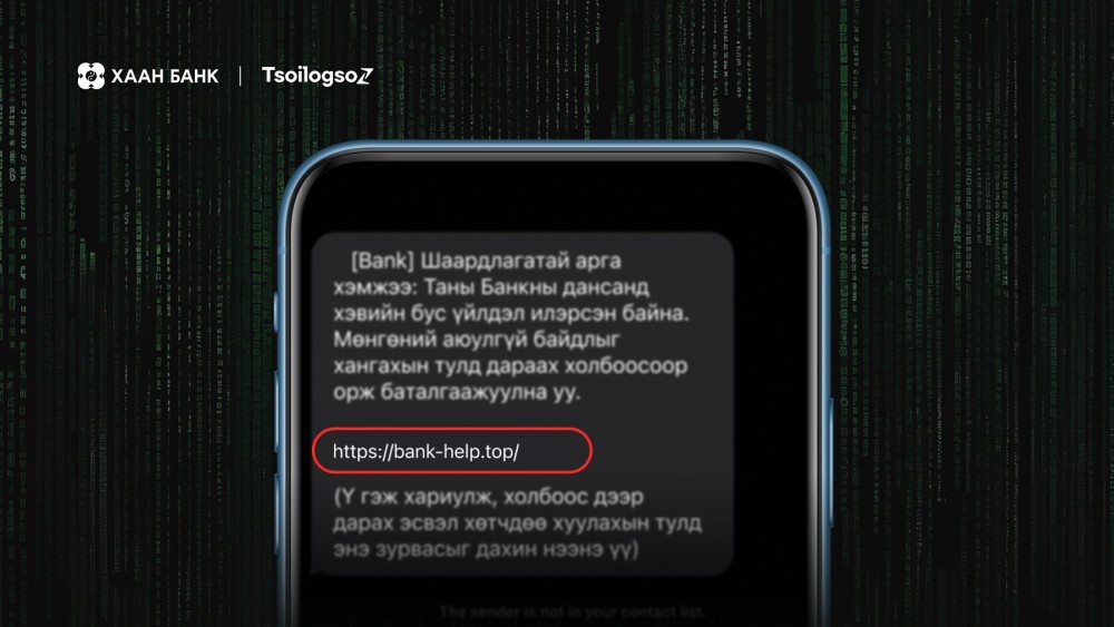 Банктай холбогдох: Мессежээр ирсэн холбоос дээр дарж, хувийн мэдээллээ оруулсан бол та интернэт банкны нууц үгээ яаралтай солих эсхүл интернэт үйлчилгээгээ шуурхай идэвхгүй болгох арга хэмжээ авна уу.