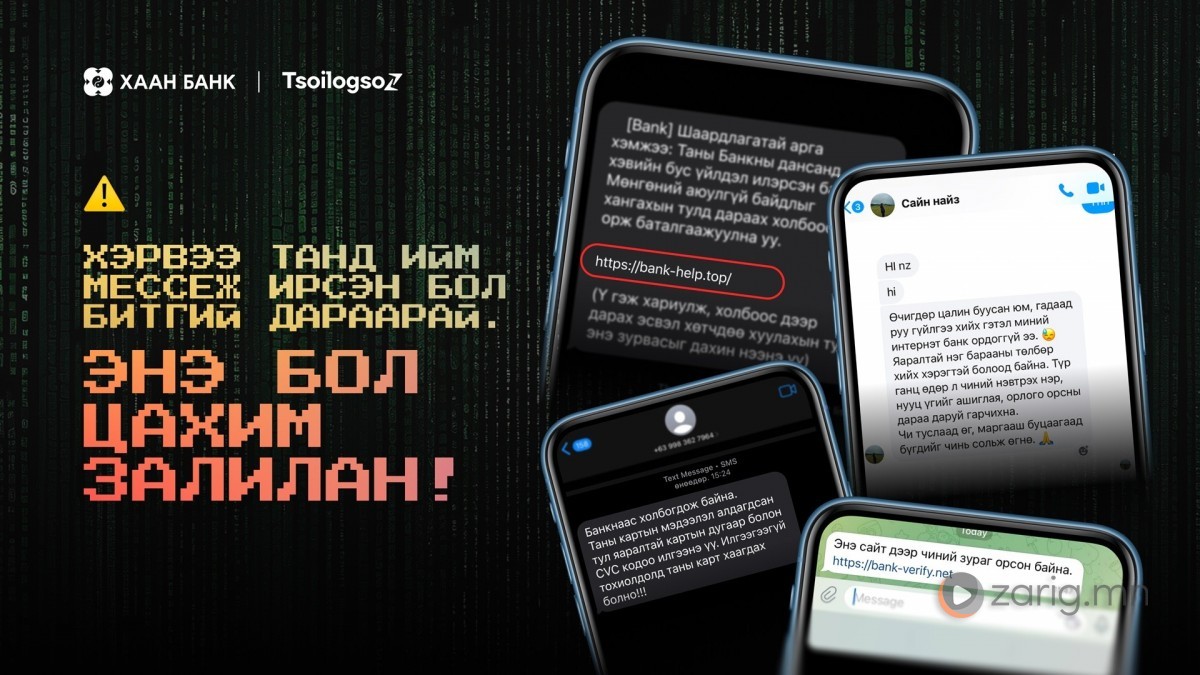“Таны банкны дансанд асуудал гарлаа. Яаралтай доорх линкээр нэвтэр!” аль эсвэл “50%-ийн хямдралтай iPhone, одоо захиал!” гэх мэт мессеж танд ирж байсан уу? Хэрэв тийм бол болгоомжлоорой. Энэ бол цахим залилан!