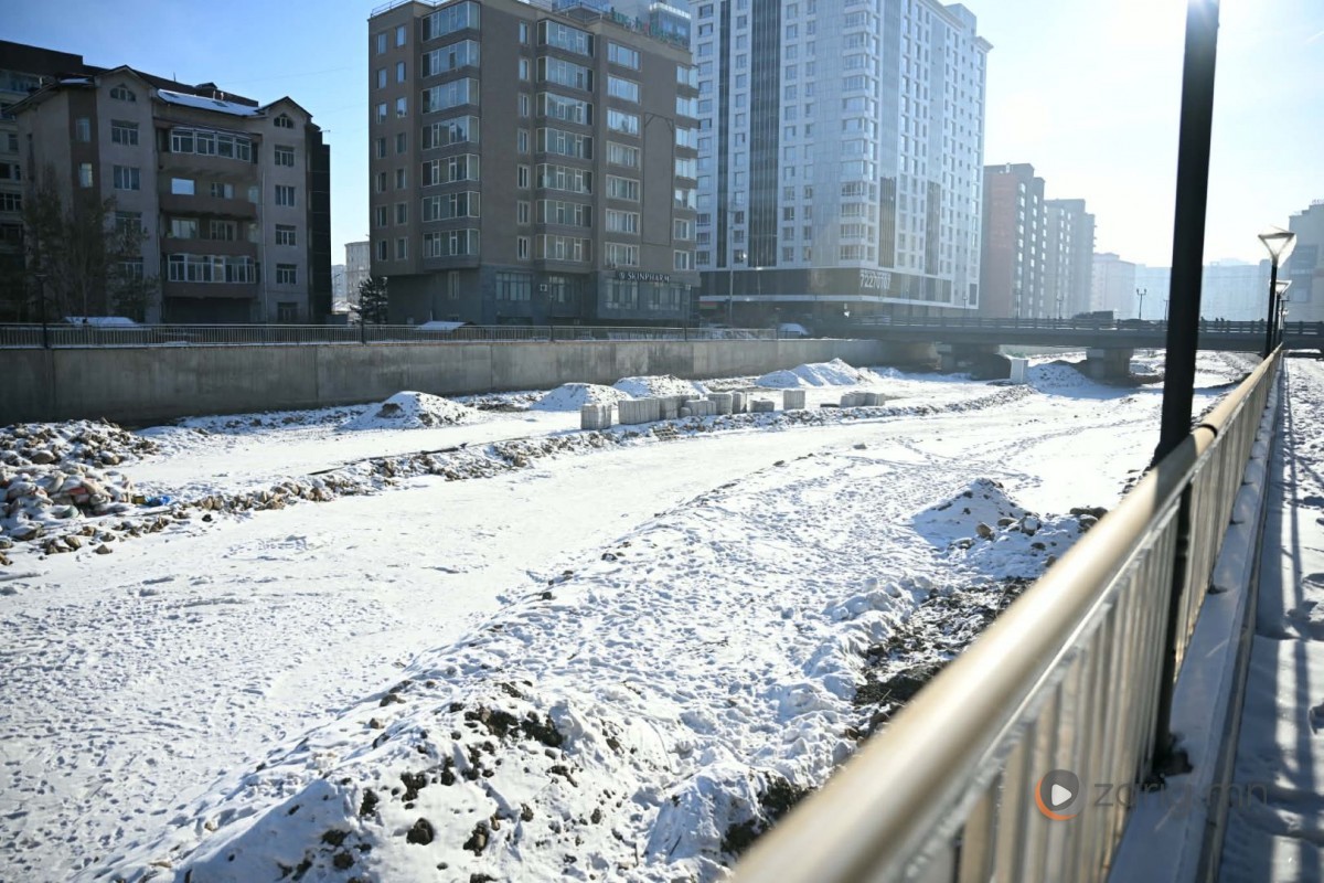 “Зэвэрдэггүй ган, 4 мм-ийн зузаантай, 1.2 метр өндөртэй төмрөөр явган замын хашлага хийж байна. Мөн голын хажуугаар гэрэлтүүлэг хийсэн. Малгайвчууд хийсэн. Хашлага, малгайвчийн үлдсэн ажлууд бусад ажилтай уялдан хийгдэж байна. Гуравдугаар сард дулаарч эхлэхээр ажлаа эхлэхээр төлөвлөж байна. Тус ажил 50 хувьтай байна” гэлээ.