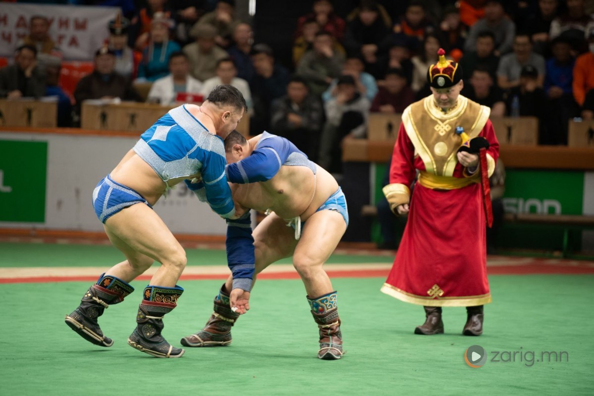 Өнөөдөр Шинэ үндсэн хууль батлагдсаны 34 жилийн ойд зориулсан Улс, аймаг, цэрэг, сумын цолтой чансаа өндөр 128 бөхийн барилдаанд зохион байгуулагдаж байна. Дараах бөхчүүд зодоглож байна