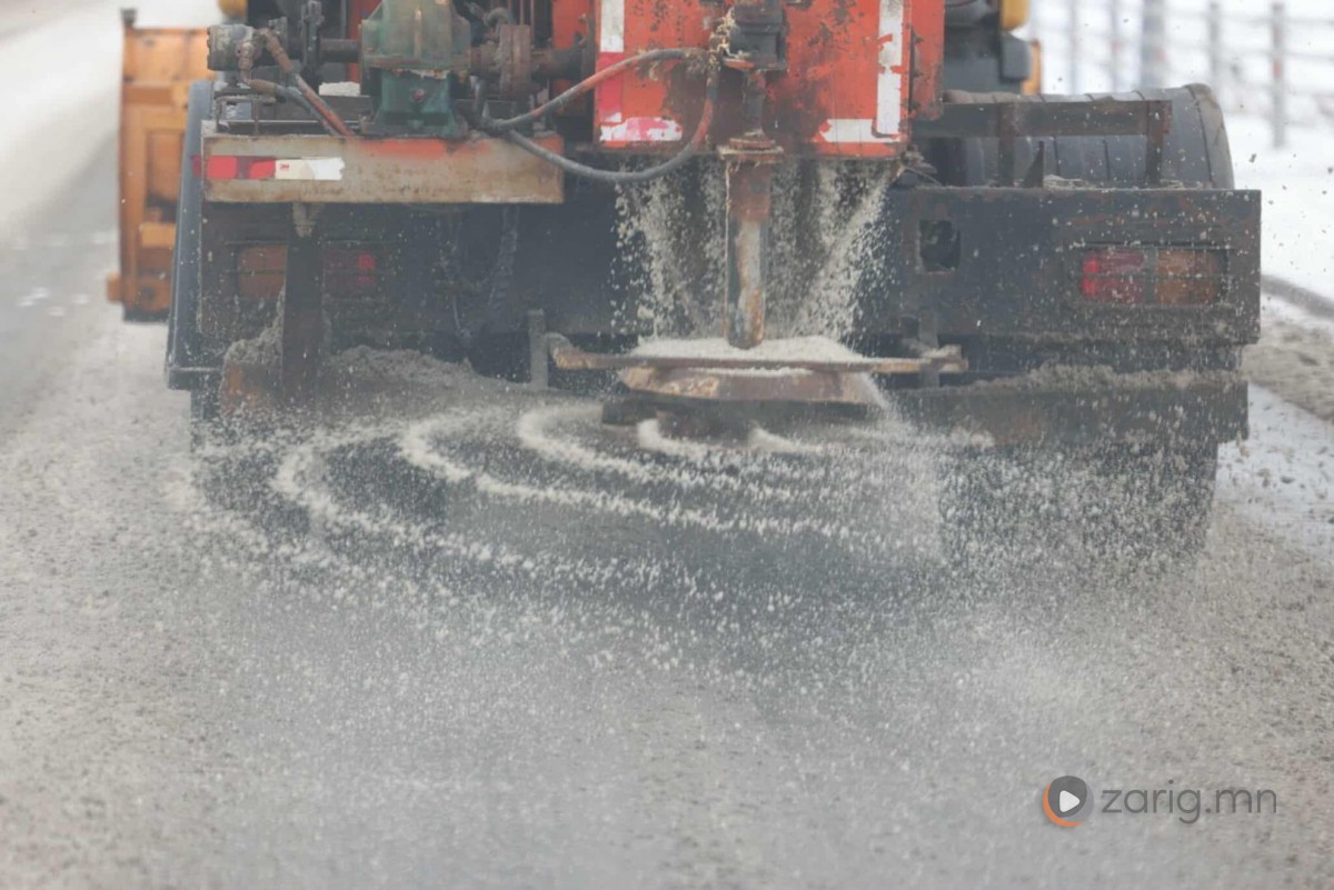 Гудамж, талбайн цас цэвэрлэхээр нийт 280 хүн, 54 техник, 84 бичил төхөөрөмжтэй ажиллаж байна. Зам талбайд 45 тонн давс, 84 тонн бодис цацсан бөгөөд 1149.5 тонн давс, 471.5 тонн бодис, 94 шоо метр дайргын нөөцтэй байна. Явган зам, зорчих хэсэг хусалт, түрэлт, цэвэрлэгээнээс гарсан хар цасны ачилтын цэвэрлэгээг хийсэн. Харин Хөшигийн хөндий, Айцын даваа, Морингийн даваа, Наадамчдын зам болон гэр хорооллын дундах замуудад давс, бодис цацаж байна.