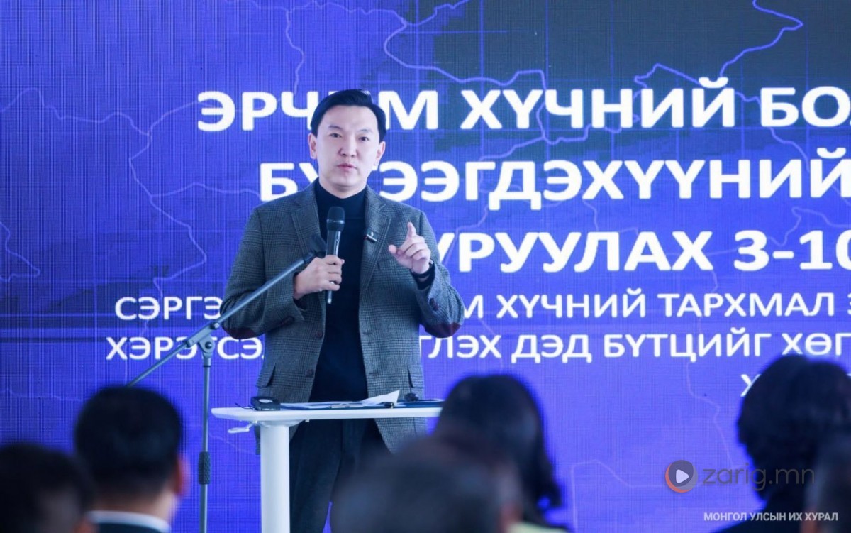 Монгол Улсын Их Хурлын дарга Н.Учрал, Улсын Их Хурлын гишүүн А.Ундраа, Ч.Анар, М.Энхцэцэг нар Сэргээгдэх эрчим хүчний тархмал эх үүсгүүр бүхий цахилгаан тээврийн хэрэгсэл, цэнэглэх дэд бүтцийг хөгжүүлэх хууль, эрх зүйн орчны талаарх уулзалт хэлэлцүүлэгт өнөөдөр (2026.01.15) оролцов. Төр, хувийн хэвшил, олон улсын байгууллагын хамтын ажиллагаа, хөрөнгө оруулалтыг дэмжих эрх зүйн орчны талаар санал солилцох зорилго бүхий энэхүү арга хэмжээнд төрийн болон төрийн бус, олон улсын 80 гаруй байгууллагын төлөөлөл хүрэлцэн ирсэн юм.