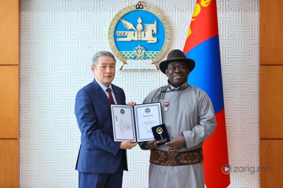 Монгол Улсын Ерөнхийлөгч У.Хүрэлсүхийн зарлигаар НҮБ-ын Хүүхдийн сангийн Суурин төлөөлөгч Эваристе Коуасси-Комланыг “Найрамдал” медалиар шагнасныг Ерөнхийлөгчийн Ахлах зөвлөх Н.Хүрэлбаатар гардуулав.