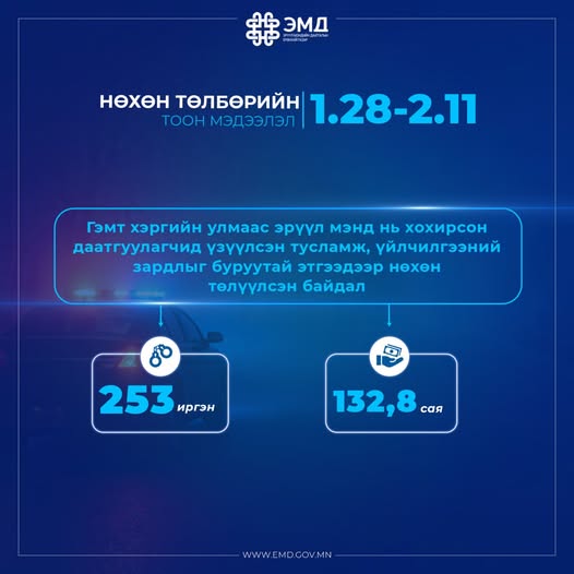 Тэгвэл 2026 оны 1 дүгээр сарын 28-ны өдрөөс 2 дугаар сарын 11-ний өдрүүдэд 253 даатгуулагч-иргэнд ЭМД-ын сангаас 132,8 сая төгрөг зарцуулсныг хуулийн хүрээнд буруутай этгээдээр нөхөн төлүүлж, ЭМД-ын санг хохиролгүй болголоо.