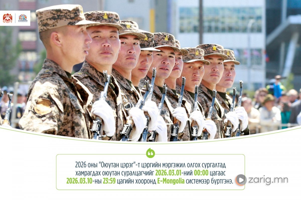 2026 оны "Оюутан цэрэг"-т цэргийн мэргэжил олгох сургалтад хамрагдах оюутан суралцагчийн бүртгэл гуравдугаар сарын 1-ний өдрийн 00:00 цагаас гуравдугаар сарын 10-ны өдрийн 23:59 цагийн хооронд үргэлжилнэ. Бүртгэл төрийн мэдээллийн нэгдсэн систем /E-Mongolia/-ээр явагдана. "Оюутан цэрэг" хөтөлбөрт зөвхөн I дамжааны оюутнууд хамрагддаг байсан бол 2025 онд Батлан хамгаалах яамнаас журамд өөрчлөлт оруулснаар II болон III дамжааны оюутнууд хамрагдах боломжтой болсон юм.