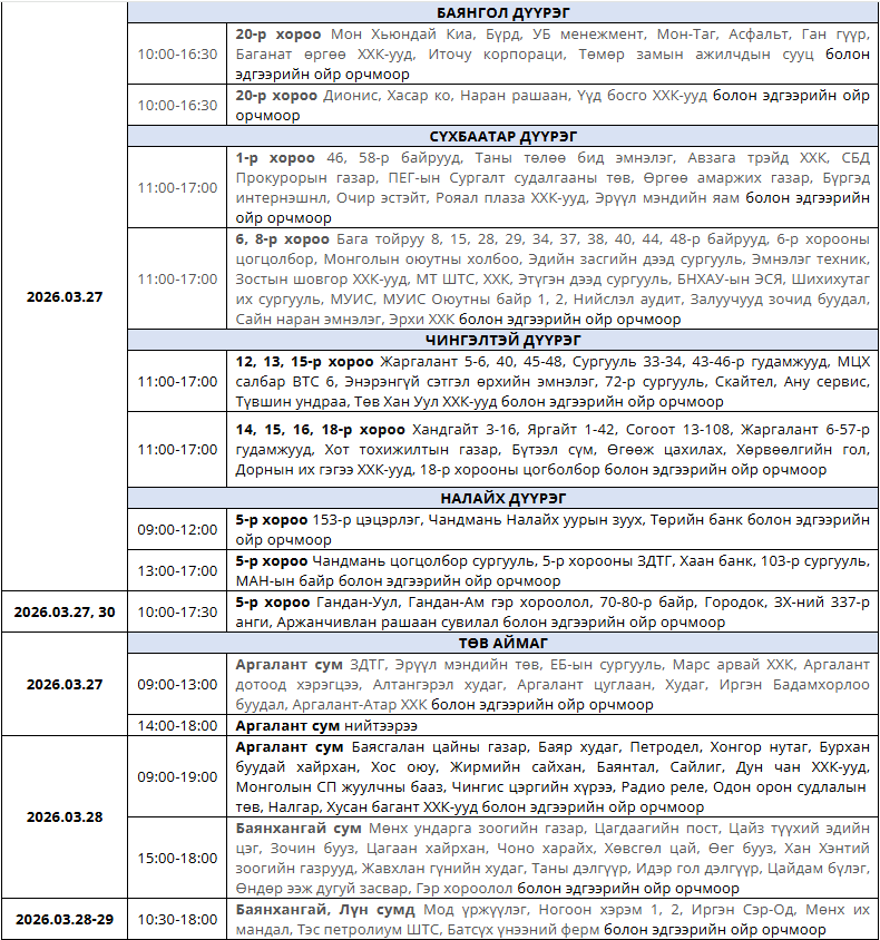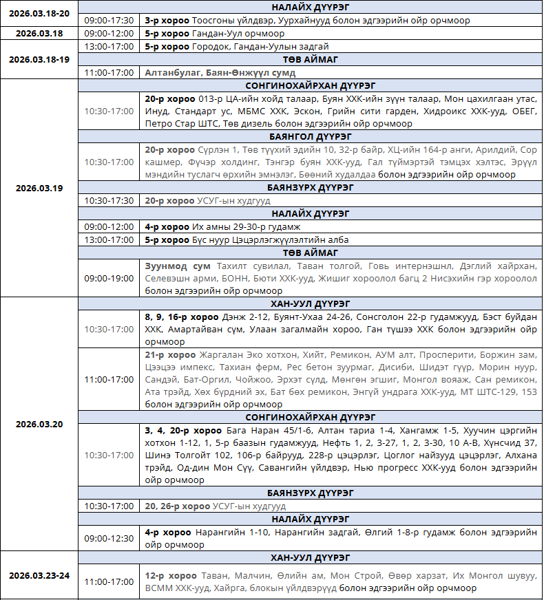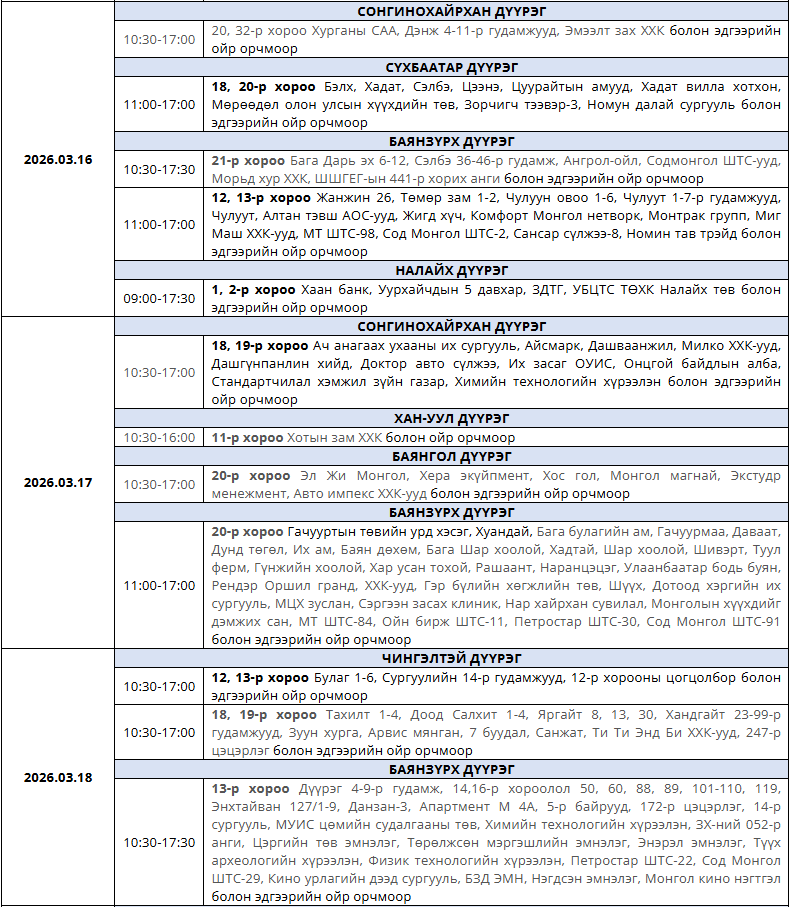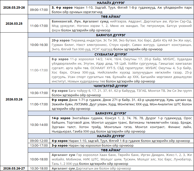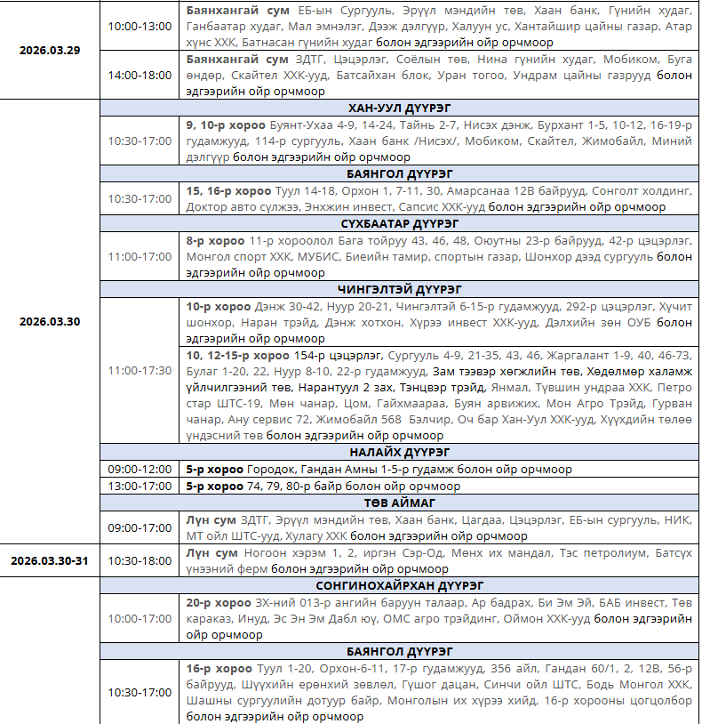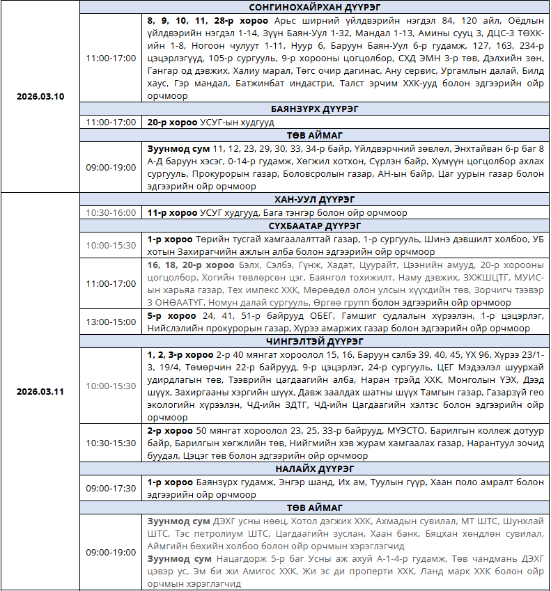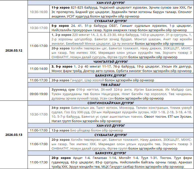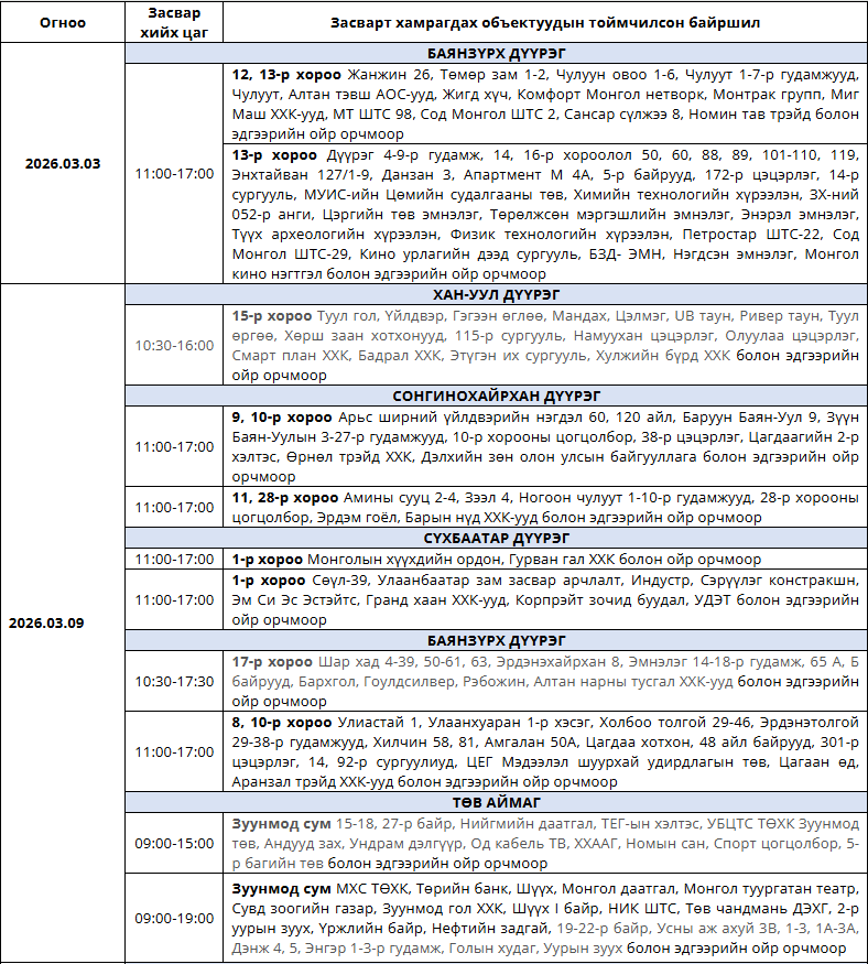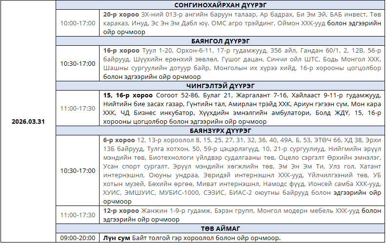 Танилц: Гуравдугаар сард цахилгаан хязгаарлах хуваарь