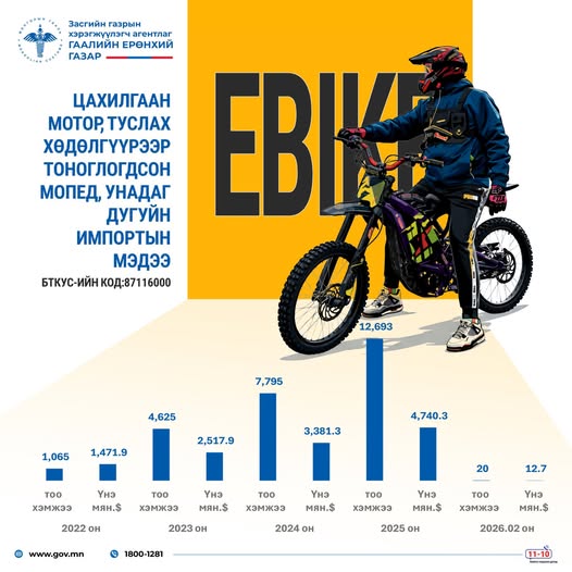 2022 онд 1065 ширхэг байсан импорт 2025 онд 12693 ширхэгт хүрч, 3 жилийн хугацаанд 10 дахин өссөн үзүүлэлттэй байна. Үнийн дүн мөн 1.47 сая ам.доллараас 4.74 сая ам.доллар болж нэмэгджээ. Тухайлбал,