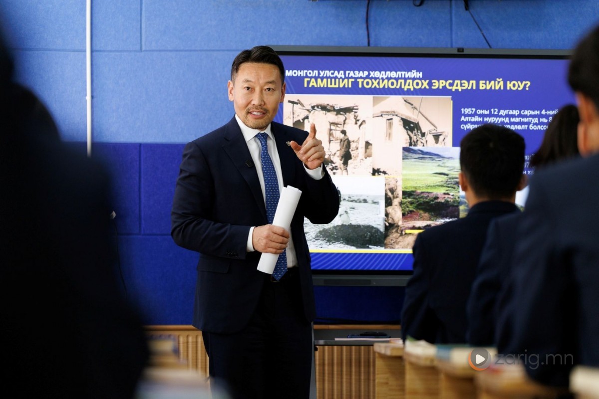 Монгол Улсын Шадар сайд Х.Ганхуяг “Аюулгүй амьдрах ухаан” хөтөлбөрийн хүрээнд Ерөнхий боловсролын “Оюуны ундраа” цогцолбор сургуулийн 10ё ангийн сурагчдад гамшгийн эрсдэлийг танин мэдэх, урьдчилан сэргийлэх, аюул эрсдэлийн үед өөрийгөө болон бусдыг хамгаалах, гамшгийн үед бэлэн байх сургалт мэдээллийг өгөв.
