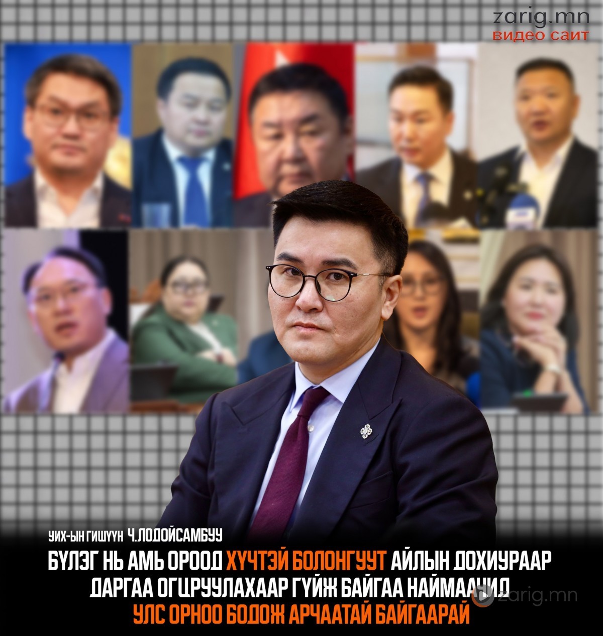 УИХ-ын гишүүн Ч.Лодойсамбуу өөрийн цахим хуудсаараа дамжуулан байр сууриа илэрхийллээ. Тэрбээр, "Бүлэг нь амь ороод хүчтэй болонгуут айлын дохиураар даргаа огцруулна гээд бичиг бариад гүйж байгаа манай АН-ын бүлгийн зартай наймаачид намынхаа жирийн гишүүд дэмжигчдийн итгэл, намаа боддоггүй юм гэхэд улс орноо бодож ганц удаа арчаатай байгаарай!" гэсэн юм.