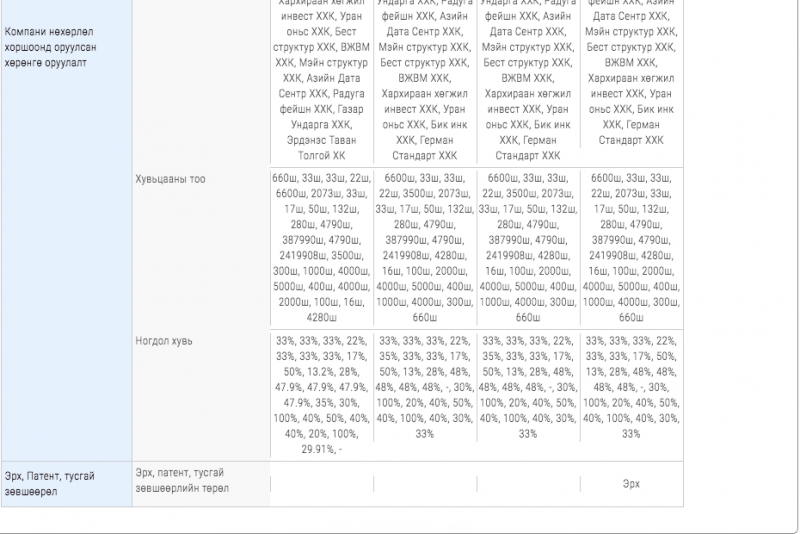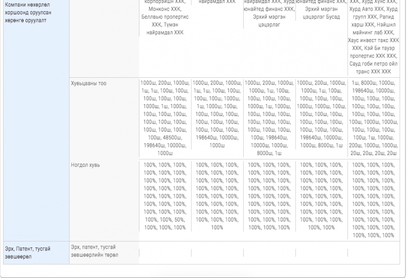 УИХ-ын гишүүн Б.Наранхүү 24 компанид хувьцаа эзэмшиж хувь авдаг. 500 сая төгрөгийн үнэт эдлэлтэй. Бусад сонирхолтой мэдээллийг хүснэгтээс харна уу.