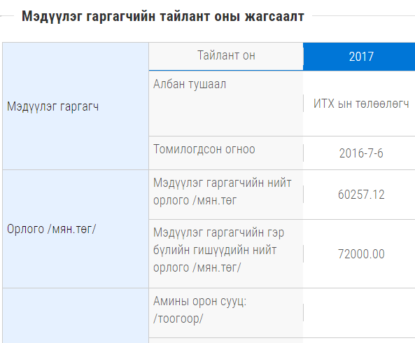 О.Мөнгөншагай 2017 оны Хөрөнгө Оруулгын Мэдүүлэг
