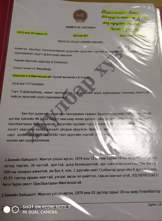 Нийслэлийн засаг даргын Хот байгуулалтын асуудал хариуцсан төслүүдийн удирдагч. О.Мөнгөншагай нь өмнө нь 2015 онд эрүүгийн хэрэгт холбогдож байжээ. Тэрээр Хан уул дүүргийн прокурорын газраас Эрүүгийн хэргийн тусгай ангийн 99 дүгээр зүйлийн 99.1 дэх хэсэгт зааснаар яллах дүгнэлт үйлдэж байсан байна. 99.1 дэх хэсэг нь бусдын биед санаатайгаар гэмтэл учруулах гэсэн хуулийн зүйл заалтад хамаарч байна. Тухай үед архины шилээр бусдыг цохиж гэмтээн, танхайрч байсан байна.