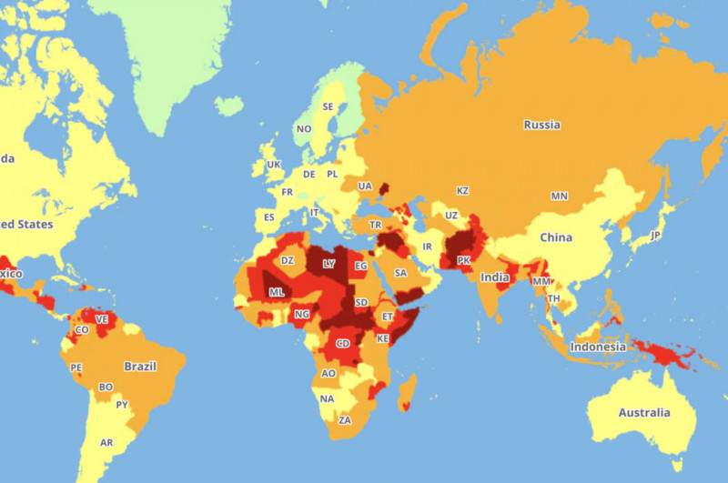 Ер нь Африкийн ихэнх орнууд аялал хийхэд дундын болон өндөр түвшиний эрсдэлтэй гэсэн ангилалд багтаж байгаа бол Их Британи, АНУ, Канад, Австрали, Хятад болон Европын орнууд бага түвшиний эрсдэлтэй орноор нэрлэгджээ. Монгол улсын хувьд энэхүү газрын зураг зураг дээр шараар буюу дунд түвшний эрсдэлтэй бүс нутагт багтсан байна. ОХУ ч гэсэн ийм үнэлгээг авчээ.