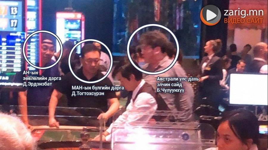 Баримт: Д.Тогтохсүрэн казино тоглож байна 2020/01/19 УИХ дахь МАН-ын бүлгийн дарга Д.Тогтохсүрэн нь 2020 оны нэг дүгээр сарын 17-18 нд шилжих шөнө Австрали улсын Сидней хотын казинод тоглож явна. Төрд ажиллаж байгаа хэн боловч гадаадад казино тоглож бол…