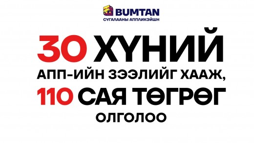 Монголын анхны сугалааны аппликэйшн BUMTAN “Зээл хаадаг сугалаа” -ны азтан болсон 30 хүний аппликэйшний зээлийг хааж, нийт 110 сая төгрөгийн хонжвор тараажээ.