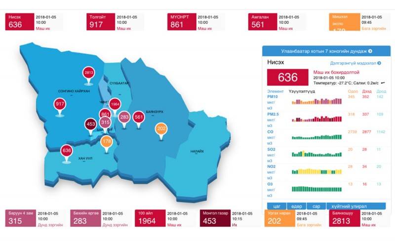 ХОТЫН ИХЭНХ ХЭСЭГТ ОНЦ БАЙДАЛ ЗАРЛАХААР БОХИРДОЛТОЙ БАЙНА 2018/01/05 Агаарын чанарын албанаас авсан мэдээгээр нийслэлийн ихэнх хэсэгт Агаарын чанарын индекс 500 давжээ.Ялангуяа, Толгойт, Баянхошуу, 100 айл, МҮОНРТ, Нисэх орчимд 5-28.1 дахин их байгаа нь онц байдал зарл…